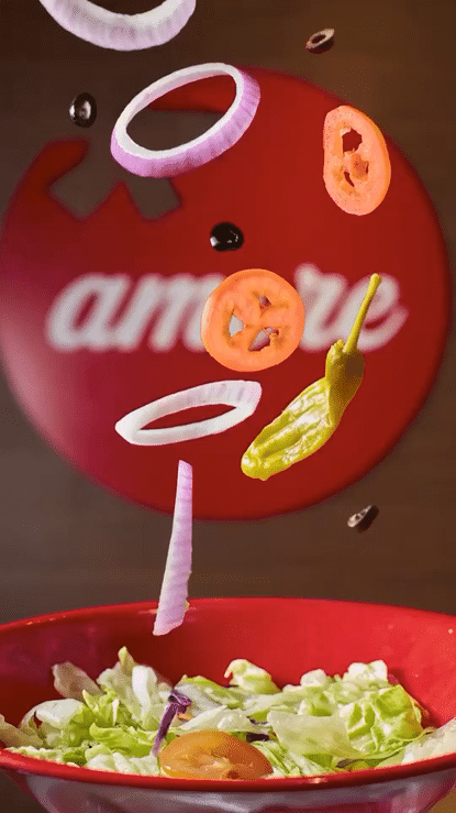 Another great example of what can be done in post. Instead of shooting each item individually this was all done in one go. A high shutter speed and natural light allowed us to capture the falling items clearly. The animation was done using the final image and the blank backdrop.